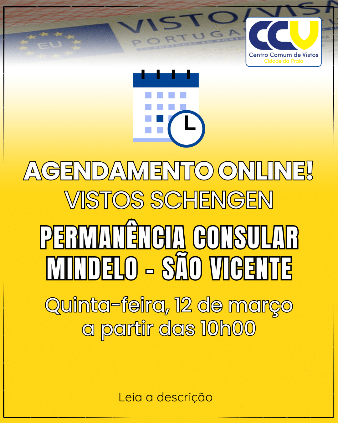 Conforme anunciado previamente, o Centro Comum de Vistos (CCV) vai realizar uma permanência consular em Mindelo – São Vicente.